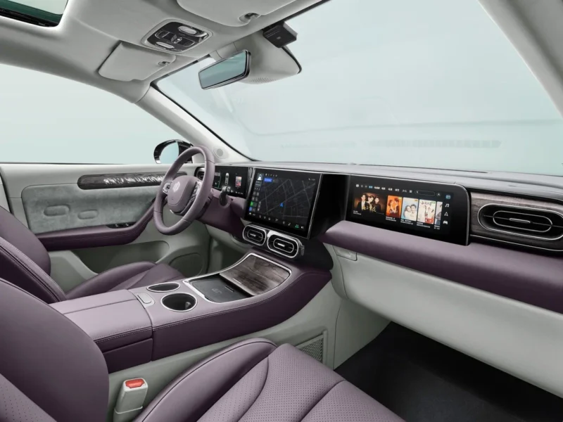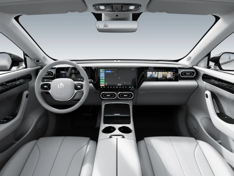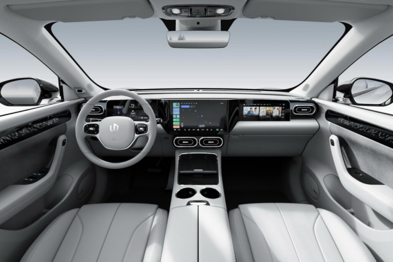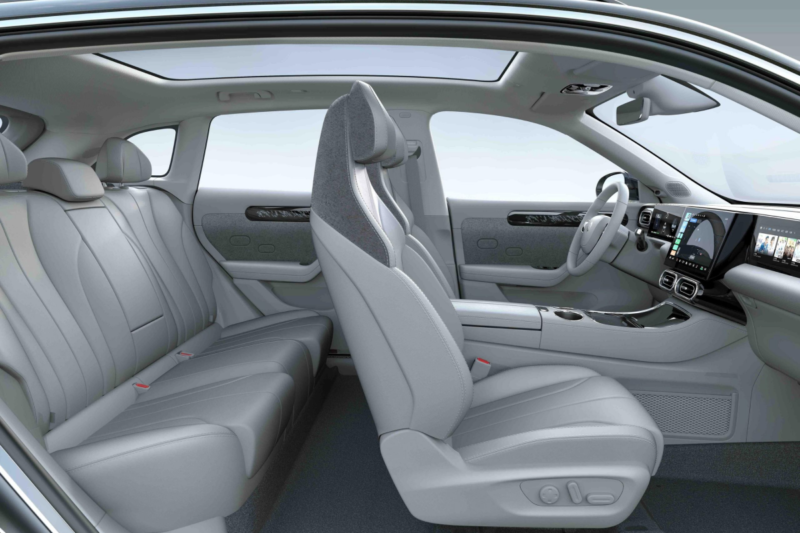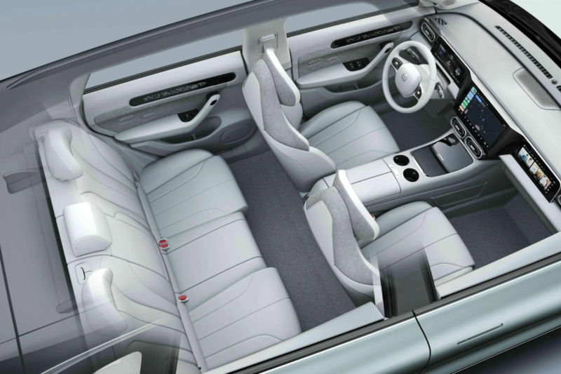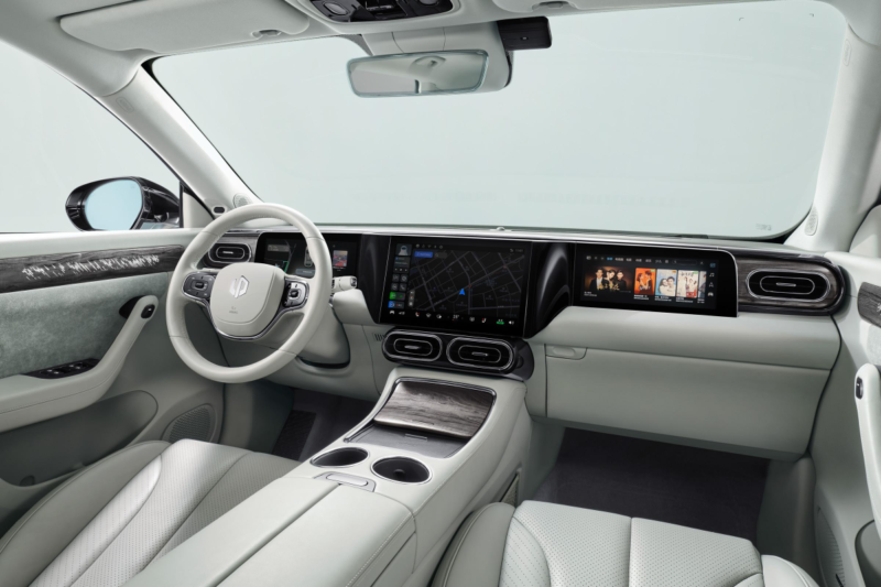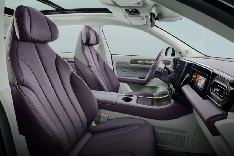 Главная «фишка» слона – симметричная передняя панель с тремя экранами: боковые имеют диагональ 10,25 дюйма, центральные – 12,8 дюйма. Эти экраны нужны как для развлечения пассажиров, так и для комфорта водителя, ведь кроссовер С11 оснащен системой Leap Pilot – автопилотом 3-го уровня по классификации SAE, который в будущем может быть обновлен до уровня 4. Уже 3-й уровень при определенных условиях снимает с человека ответственность за безопасность на дороге. Также C11 имеет акустическую звуковую систему Hi-Fi с 8-канальным усилителем. А сиденья в авто исполнены из кожи Nappa.