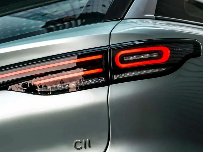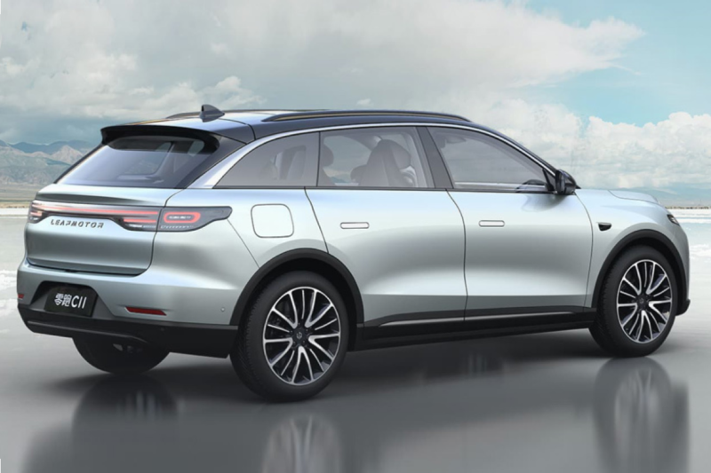Leap Motor C11 имеет двухцветный корпус, который на 76,2% состоит из высокопрочных сталей, имеет совершенно гармоничный дизайн, безрамные дверные окна и выдвижные ручки. Передняя подвеска у авто на двойных поперечных рычагах, задняя – независимая, пятирычажная. C11 привлекательное транспортное средство со стильным дизайном. Впереди автомобиль имеет светодиодные фары, объединенные глянцевой черной полосой. Бампер достаточно минималистичен, на нем расположены только функциональные элементы, такие как нижняя воздушная плотина для охлаждения аккумулятора и боковые воздухозаборники для охлаждения тормозов.