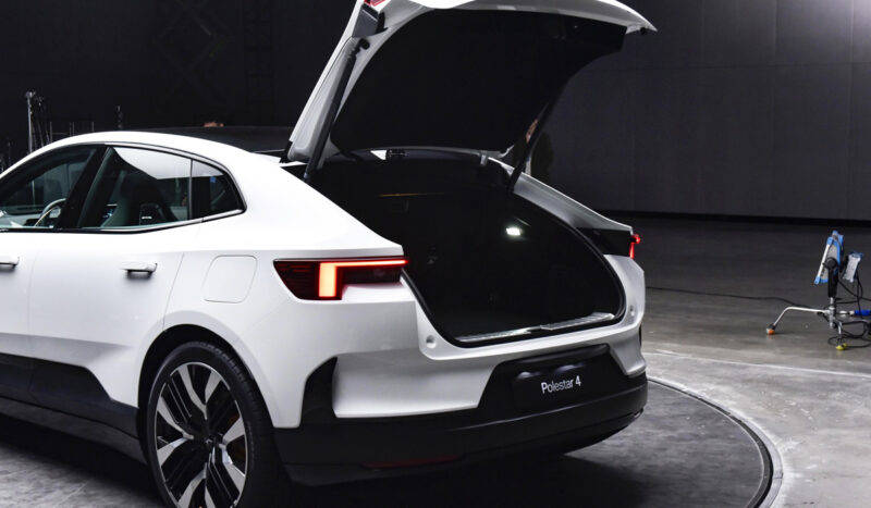 Что до типа кузова, то это не седан и не хэтчбек в традиционном понимании. Polestar 4 лишен заднего стекла, благодаря чему инженеры реализовали сразу две компоновочные хитрости. Во-первых, мощная поперечина крыши, которая обычно располагается перед стеклом, сдвинута дальше назад, что позволило добавить пространства над головами седоков.