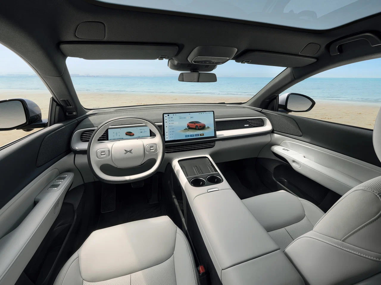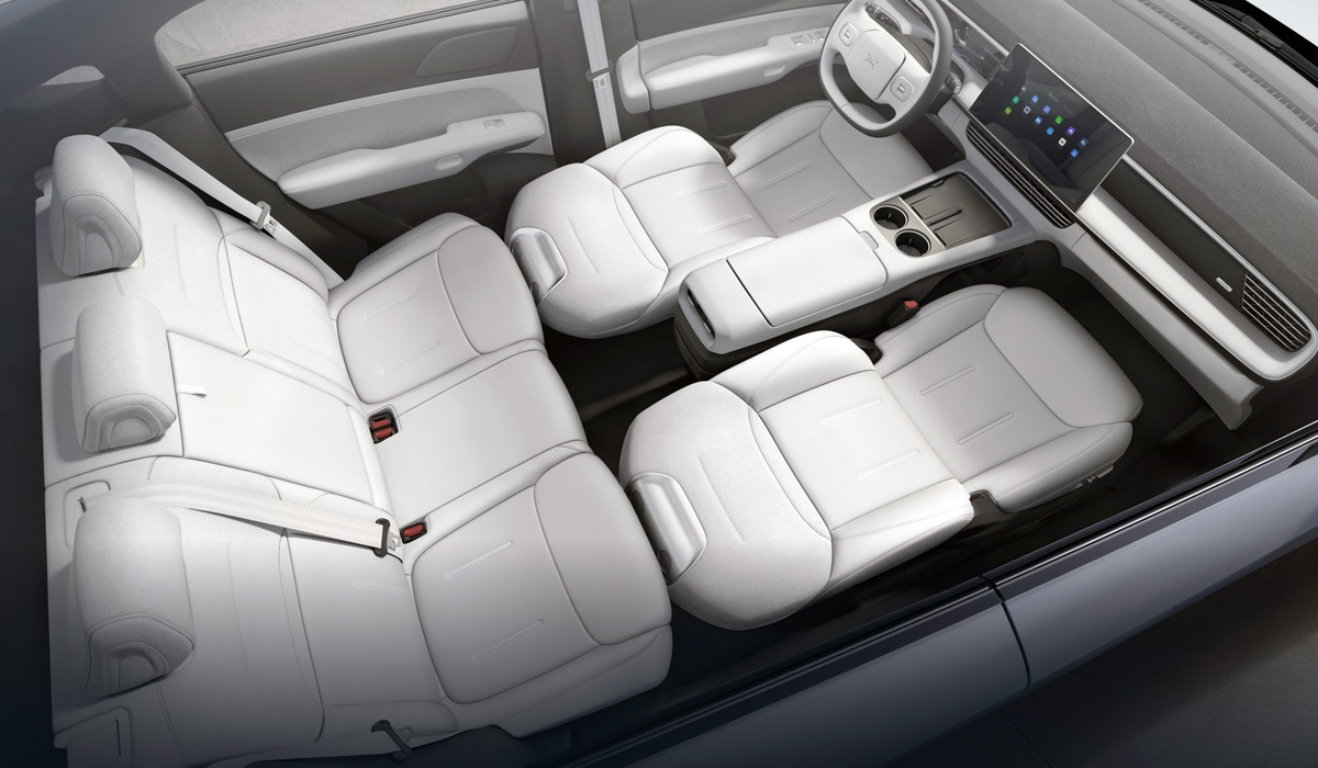 В оснащении XPeng G6 — 31 датчик (включая два лидара), цифровая панель приборов с экраном диагональю 10,25 дюйма, медиасистема с большим экраном диагональю 14,96 дюйма, беспроводная зарядка для смартфона, кожаный салон, большая панорамная крыша.