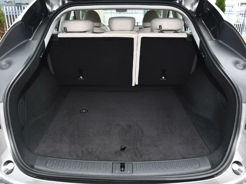 Интерьер сделан по тем же лекалам, что и у первых двух моделей. Но вместо трех экранов на передней панели теперь установлены два — один большой и еще один поменьше. По умолчанию кроссоверу полагается штурвал, хотя можно заказать и традиционный руль. Салонное зеркало заднего вида намеренно сделано быстросъемным, так что его отсутствие на некоторых кадрах — это не ошибка.